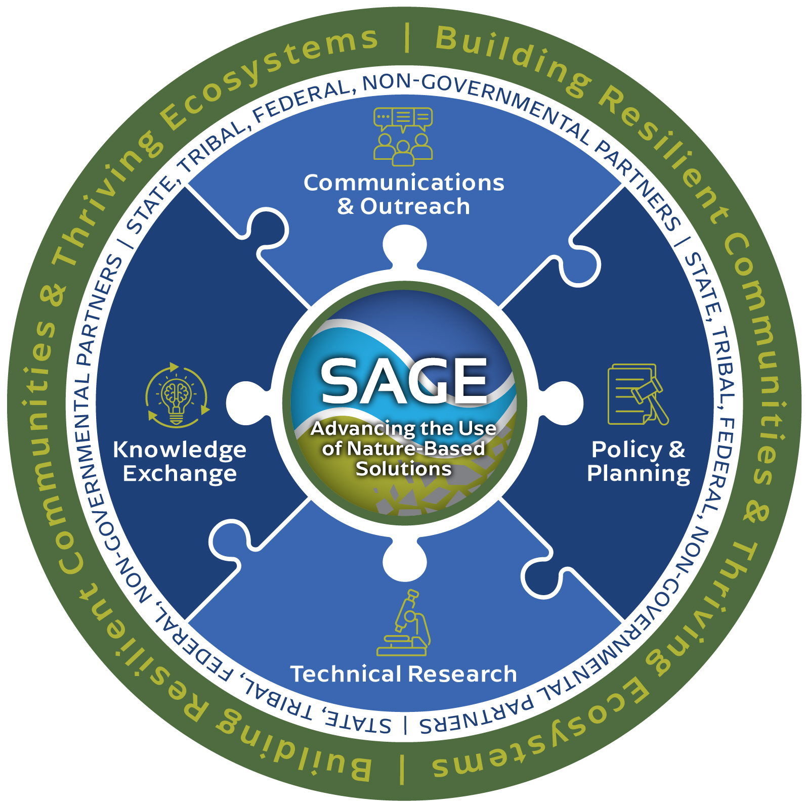 The SAGE program increases agency knowledge, skills, and technical abilities to effectively address water resource management challenges to natural hazards that impact public safety. SAGE focuses on identifying current and future needs to better adapt and protect against a range of risks to natural hazards.